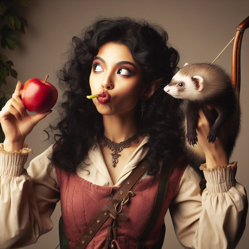 | Bazalka je průměrně vysoká, průměrně široká a průměrně hezká půlčice. Vlasy má tmavé a kudrnaté a ať se snaží jak se snaží, vždycky v nich najdete alespoň list nebo ulomenou větvičku. Kromě luku s sebou nosí i dýku a nůž na stahování zvěře. Málokdy jí potkáte bez pláště s kápí, ve které přes den spí Frida – její fretka. |